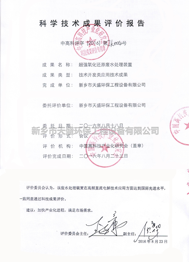 超強氧化還原廢水處理裝置(CYH法)處理各種有機廢水、各種重金屬廢水